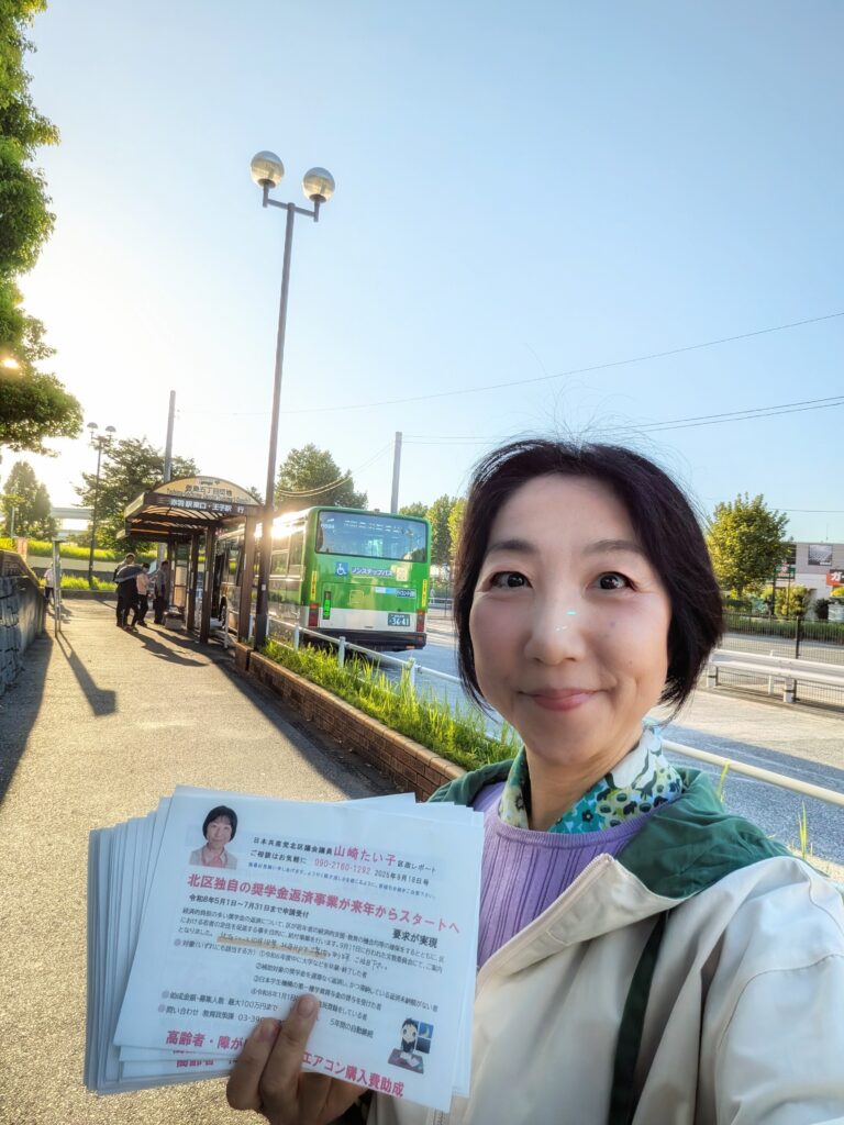 9月24日(水)、今朝は豊島5丁目団地バス停より、区政レポートをお届けしながらご挨拶。