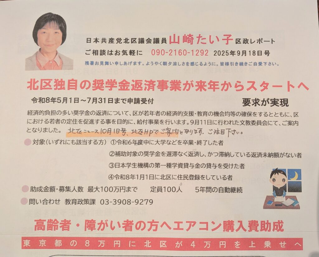 来年5月から申請が始まる、#北区独自の奨学金返済支援事業 が