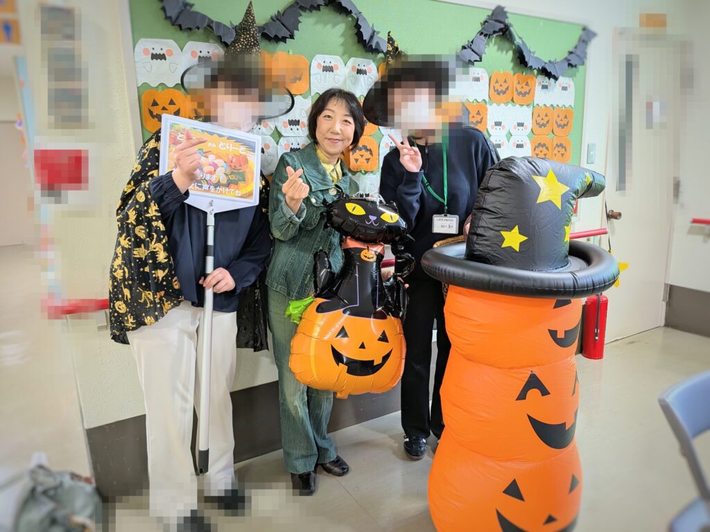 ハローウイン仕様で参加しているボランティアの福祉学生さんとショット