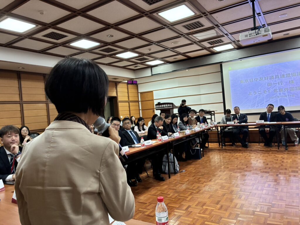 続いて、北京外国語大学の構内にある「日本学研究センター」を訪問。教職員や院生・学生さんと懇談