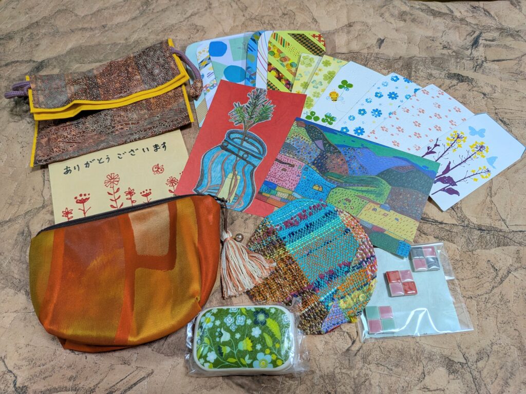 私も皆さんの力作の作品をじっくり見て購入したり、絵手紙にチャレンジしたり、肩こりマッサージをしてもらったり、、、と、楽しい時間を過ごさせて頂きました(^^)
