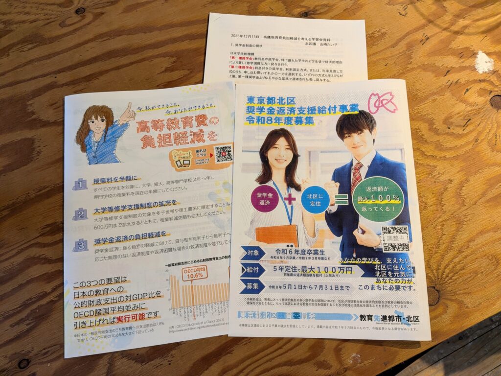 右は、来年度スタートの北区独自の奨学金返済支援給付事業のリーフ(^^)