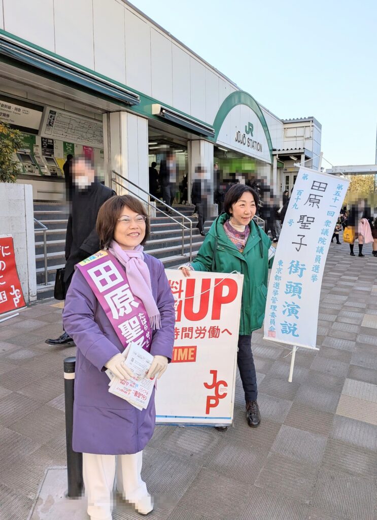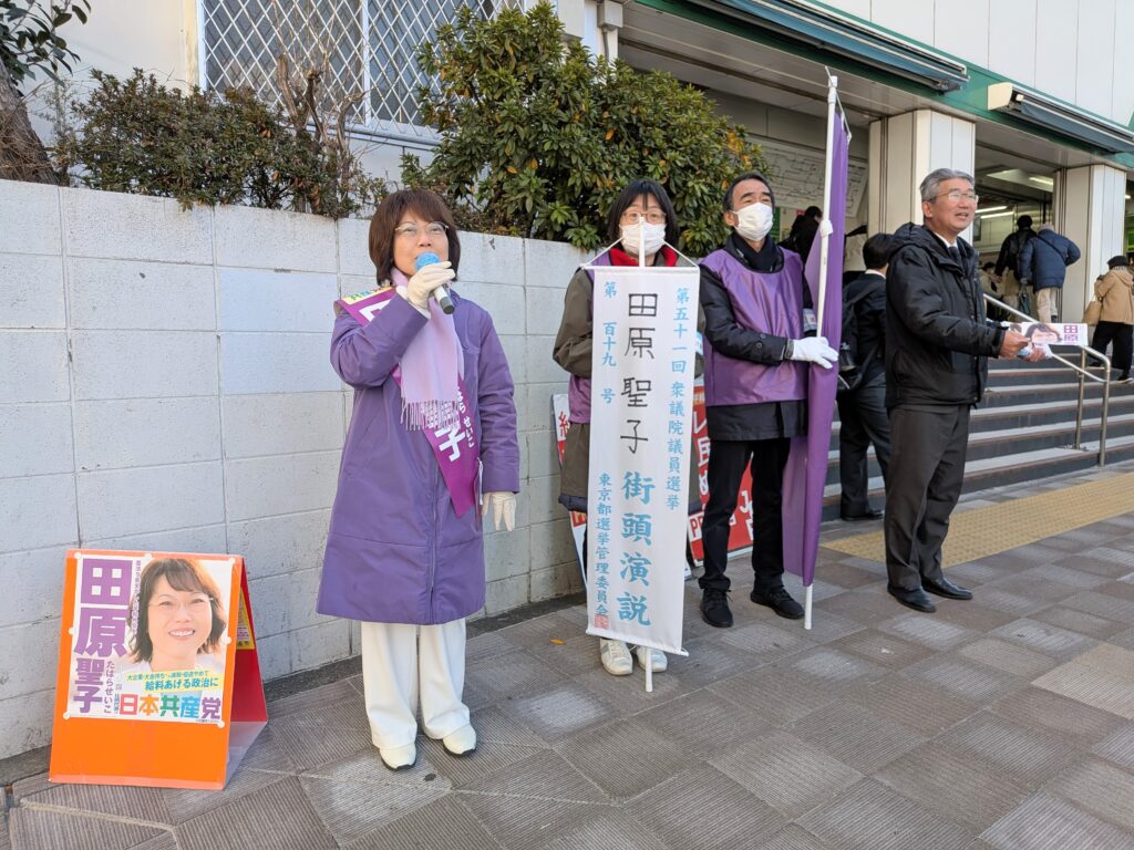 2月5日(木)、今朝一番は同僚の野口まさと区議と共に、#東京12区田原聖子候補 と十条駅からご挨拶。