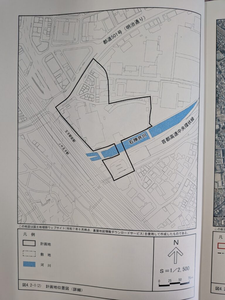 北区王子1丁目および、堀船1丁目に位置する計画地(約26000㎡)の商業地域、準工業地域において、東街区(東棟)に、住宅、駐車場など、西街区(西棟)に、住宅、商業、ホテル、事業所、駐車場の他、貫通道路、石神井川にかかる橋梁などの建設、および南口広場の整備を計画するもの。