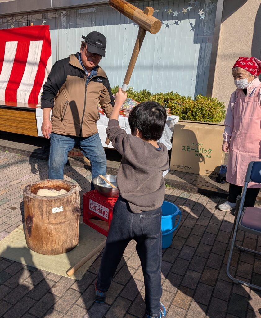 子ども達も小さな杵で、ペッタンペッタン!