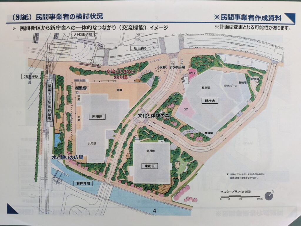 王子駅前まちづくりは「再開発促進区」による1000%への容積率緩和をやめ、住友不動産による50階190mタワマン2棟の高さを抑え、環境にも配慮した計画へ変更を