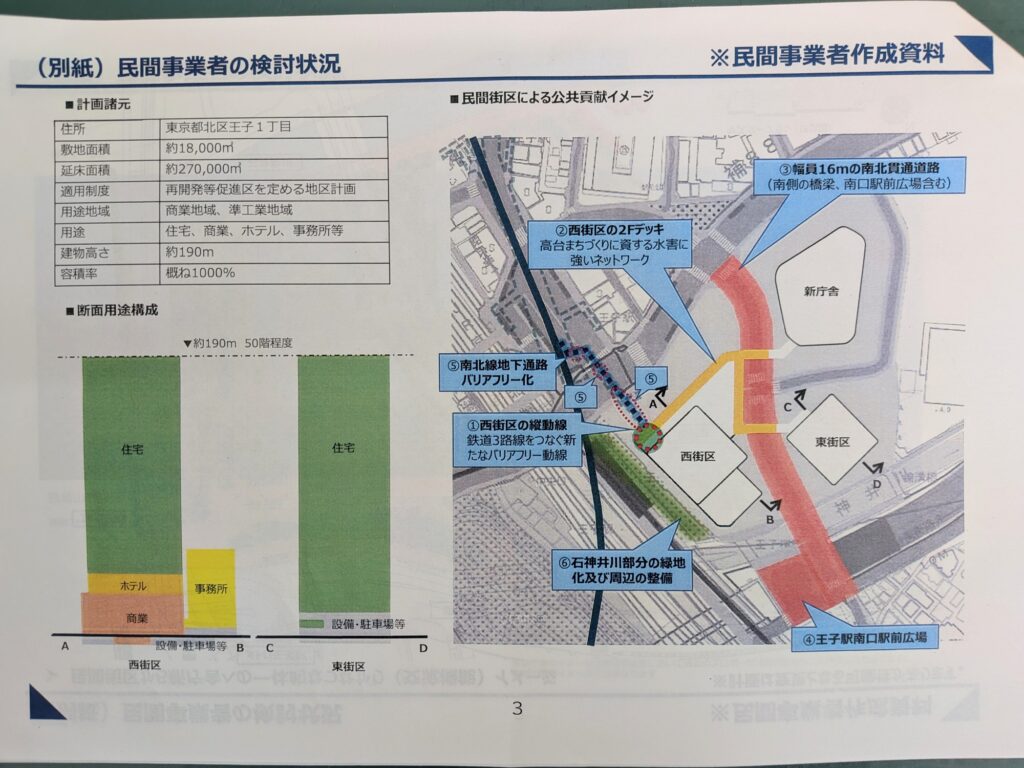 住友不動産から50階タワマン2棟を含む開発計画が示された。地域では、「あまりにも高くて驚いた」「50階もいらないね」「いったい誰が住むのか」「外資系や投資の転売物件になるのでは」「地価が高騰し、普通の人が住めないまちになってしまう」「王子のまち、飛鳥山の景観や歴史・文化にあわない」との声や、