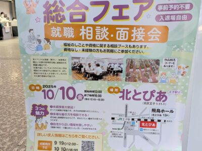 10日(金)、東京都北区の北とぴあで、#福祉のしごと総合フェア が開催されました。 今年も保育園や高齢者施設、介護事業所など、20社以上の法人や会社が面接ブースを設けて、事業内容の紹介や求人案内を実施 …